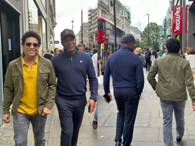 वेस्ट इंडिजचा माजी फलंदाज आणि क्रिकेट विश्वास फलंदाजी अनेक रेकॉर्ड आपल्या नावावर केलेला खेळाडू ब्रायन लारासमवेतचा फोटो सचिनने शेअर केला आहे. सचिन आणि लारा दोघेही लंडनच्या रस्त्यावर चालत असतानाचे या फोटो दिसत आहेत. सचिनने पिवळा टी-शर्ट आणि जिन्स घातली असून लारानेही निळा टी-शर्ट आणि कॅज्युएल पँट घातल्याचे दिसून येते. दोघांचाही एकदम कॅज्युअल आणि सर्वसामान्यांप्रमाणे असणारा हा लूक पाहून नेटीझन्स जाम खुश झाले आहेत. काहींनी या जोडीला दोस्ती म्हणत कमेंट केल्या आहेत. तर, काहींनी दोघांचे लोकेशन कुठले आहे, असा प्रश्न केलाय. एका युजर्सने लोकेशन लंडनमधील रस्ता असल्याचेही सांगितले आहे.