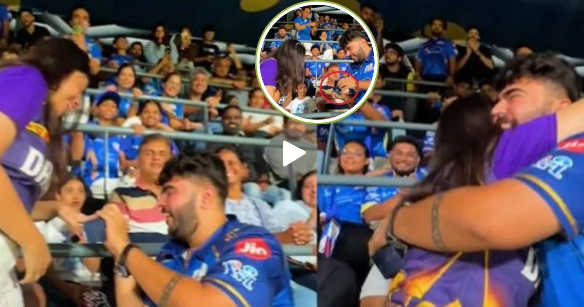 मुंबई इंडियन्सच्या जर्सीतील बॉयफ्रेंड अन् त्याने कोलकाता नाईट रायडर्सच्या जर्सीतील गर्लफ्रेंडला फिल्मी स्टाईल केलेले प्रपोज अन् त्यानंतर दोघांनी एकमेकांना प्रेमानं मारलेली मिठी सोशल मीडियावर व्हायरल होताना दिसत आहे. याआधी काही क्रिकेटर्संनी स्टेडियम स्टँडवर आपल्या गर्लफ्रेंडला प्रपोज करत आयुष्याची नवी सुरुवात केल्याचे पाहायला मिळाले आहे. त्यात आता नव्या मिस्ट्री कपलची भर पडली आहे.