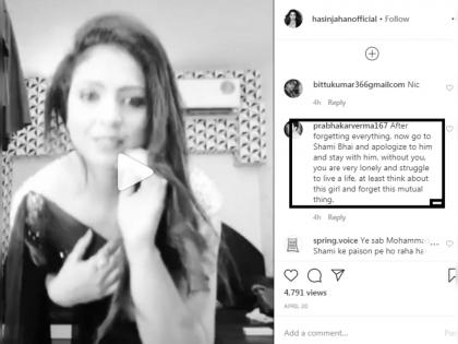 जहाँच्या व्हिडीओवर चाहत्यानं सल्ला दिला की,''झालं गेलं सर्व विसर... शमी भाईकडे जा आणि त्याची माफी माग. निदान मुलीचा विचार कर.''