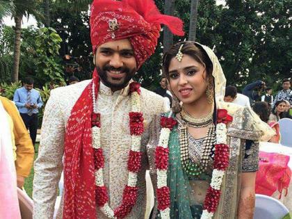 पंतप्रधान मोदींना देखील दिलं होतं रोहितने निमंत्रणरवी शास्त्री ही उपस्थित होतेहरभजनने आपली पत्नी गीता बसरासोबत रोहितच्या लग्नाला हजेरी लावलीपुजारा आणि "सर" रविंद्र जडेजा यांनी उपस्थिती दर्शवलीभारतीय कर्णधार एम. एस धोनीने आपली पत्नी साक्षी आणी मुली समवेत हजेरी लावलीलग्नापुर्वी सोनाक्षी सिन्हांला रोहीतसोबत सेल्फी काढण्याचा मोह आवरता आला नाहीरोहित आणि रितिकाचा खास मित्र युवराज सिंग आपली भावी पत्नी हेझेल किचसह या विवाहसोळ्यात सहभागी झाला.सचिन आणि अंजली तेंडूलकर यांनीही लग्नाला हजेरी लावलीरोहित आणि त्याची मैत्रिण रितिका सजदे आता आयुष्याचे जोडीदार बनले आहेत.मुंबईतल्या ताज लँड्स एन्ड या पंचतारांकित हॉटेलमध्ये रोहित आणि रितिकाचा विवाहसोहळा पार पडला.मैदानावर चौकार षटकारांची बरसात करुन चाहत्यांची मने जिंकणारा हीटमॅन रोहित शर्मा आयुष्यभरासाठी विवाहबंधनात बांधला गेला आहे. लग्नाला अनेकांनी हजेरी लावली त्यामधील निवडक फोटो आम्ही तुमच्यासाठी घेऊन आलो आहोत