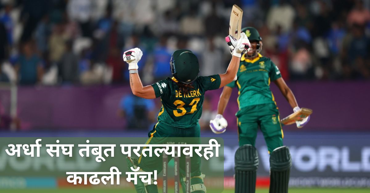 दक्षिण आफ्रिकेच्या डावाची सुरुवात अत्यंत निराशाजनक झाली होती. तंजामीन ब्रिट्स (० धाव) आणि सून लुस (५ धावा) लवकर बाद झाल्या. एका वेळी, आफ्रिकेच्या संघाने फक्त ८१ धावांत पाच विकेट्स गमावल्या होत्या आणि भारतीय गोलंदाजांनी सामन्यावर मजबूत पकड मिळवली होती. मात्र, त्यानंतर कर्णधार लॉरा वोल्वार्ड (१११ चेंडूंत ७० धावा) आणि त्यानंतर आलेल्या नॅडिन डी क्लार्क यांनी सामन्याचे चित्र पालटले. नॅडिन डी क्लार्कने अवघ्या ५४ चेंडूंत ८४ धावांची धडाकेबाज, नाबाद खेळी केली. या खेळीत आठ चौकार आणि पाच षटकारांचा समावेश होता. नॅडिन शेवटपर्यंत मैदानावर टिकून राहिली आणि आफ्रिकेला अविश्वसनीय विजय मिळवून दिला.