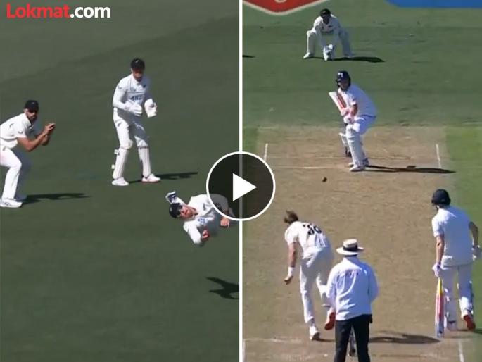 New Zealand vs England, 1st Test : न्यूझीलंड आणि इंग्लंड यांच्यातील क्राइस्टचर्च कसोटी सामन्यात ग्लेन फिलिप्सनं हवेत झेपावत अफलातून कॅच घेत सर्वांचे लक्षवेधून घेतलं आहे. इंग्लंडच्या पहिल्या डावात आघाडीच्या फलंदाजांनी नांगी टाकल्यावर हॅरी ब्रूक्स आणि ओली पोप यांनी १५०+ भागादारी करत इंग्लंडचा डाव सावरला. ही जोडी फोडणं न्यूझीलंडत्या गोलंदाजांसाठी खूपच मुश्किल झालं होतं. या परिस्थितीत संघाच्या मदतीला धावून आला तो ग्लेन फिलिप्स.