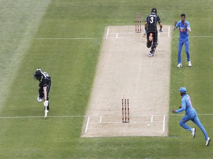 गुप्तीलनंतर किवी फलंदाजांनी तंबूत परतण्याचा सपाटा लावला. टॉम लॅथम आणि जिनी निशॅम हे लगेच माघारी परतले. त्यामुळे टीम इंडियानं सामन्यात पुनरागमन केले. जडेजानं क्षेत्ररक्षणात पुन्हा एकदा चपळता दाखवताना निशॅमला धावबाद केले. शार्दूलनं किवींना आखणी एक धक्का दिला. कॉलीन डी ग्रँडहोम स्वस्तात बाद झाला. मार्क चॅपमॅन (1)चा युजवेंद्र चहलनं स्वतःच्याच गोलंदाजीवर सुरेख झेल घेतला. चहलचा हा झेल पाहून कर्णधार कोहलीनंही आश्चर्य व्यक्त केलं. 1 बाद 142 वरून न्यूझीलंडची अवस्था 7 बाद 187 अशी दयनीय केली.