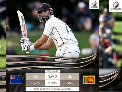 न्यूझीलंडच्या डावाची सुरुवात चांगली झाली. टॉम लॅथम ( ६७) व डेव्हॉन कॉनवे ( ३०) यांनी अर्धशतकी भागीदारी केली, परंतु असिथा फर्नांडो ( २-४२) व लाहिरू कुमार ( २-३४) यांनी किवींना बॅकफूटवर फेकले. दुसऱ्या दिवसअखेर त्यांचे ५ फलंदाज १६२ धावांवर माघारी परतले असून अजून ते १९३ धावांनी पिछाडीवर आहेत.