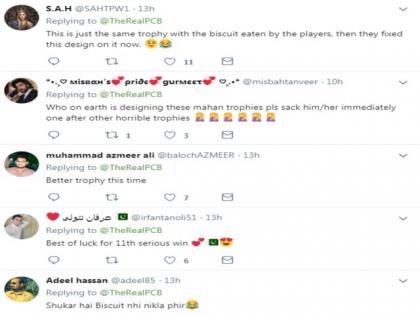 पाकिस्तान आणि ऑस्ट्रेलिया यांच्यातील ट्वेंटी-20 मालिकेच्या चषक अनावरण सोहळ्यातील फोटोने सोशल मीडियावर धम्माल विनोद फिरले होते. बिस्कीटाच्या आकाराच्या या चषकावर आंतरराष्ट्रीय क्रिकेट परिषदेने (