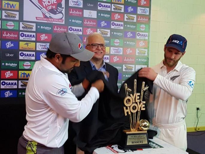पाकिस्तान क्रिकेट मंडळाने (पीसीबी) न्यूझीलंडविरुद्धच्या मालिकेच्या चषकाच्या अनावरणाचा फोटो पोस्ट केला. पाकिस्तानचा कर्णधार सर्फराज अहमद आणि न्यूझीलंडचा कर्णधार केन विलियम्सन यांनी चषकाचे अनावरण केले. या चषकावर 'ओए होए' असे लिहिले आहे. त्यावरून नेटीझन्सना खिल्ली उडवण्यासाठी आयतं कोलीत मिळालं.