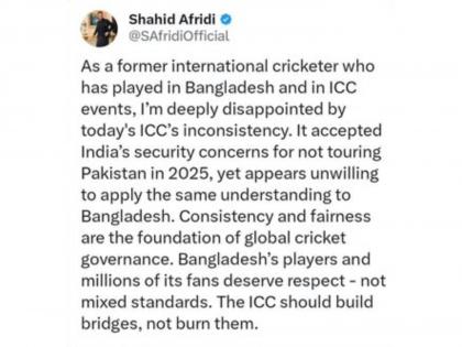 "मी एक माजी आंतरराष्ट्रीय क्रिकेटपटू आहे. मी बांगलादेशातही खेळलोय आणि ICCच्या स्पर्धांमध्येही खेळलोय. ICCने बांगलादेशला टी२० विश्वचषकातून वगळण्याचा घेतलेला निर्णय दुटप्पी आहे. जेव्हा भारतीय संघ २०२५च्या चॅम्पियन्स ट्रॉफीमध्ये सुरक्षेच्या कारणास्तव पाकिस्तानचा दौरा करणार नाही म्हणाला तेव्हा, त्यांची विनंती ICCकडून स्वीकारण्यात आली, पण त्याच मुद्द्यावर बांगलादेशची विनंती फेटाळण्यात आली. निर्णयक्षमतेतील सातत्य आणि निष्पक्षता हा जागतिक क्रिकेट प्रशासनाचा पाया आहे. बांगलादेशचे खेळाडू आणि त्यांचे लाखो क्रिकेट चाहते या दुटप्पी धोरणास नव्हे तर आदर मिळण्यास पात्र आहेत. अशा वेळी ICC ने दोन देशांमध्ये भिंती नव्हे, तर सामंजस्याचे पूल बांधले पाहिजेत," अशा शब्दांत शाहिद आफ्रिदीने टीका केली.