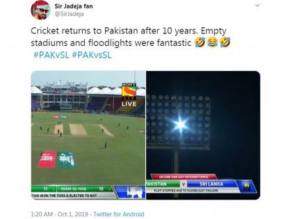 कराची नॅशनल स्टेडियमवर सोमवारी पाकिस्तान आणि श्रीलंका यांच्यात आंतरराष्ट्रीय वन डे सामना खेळवण्यात आला. 2009नंतर प्रथमच या स्टेडियमवर झालेल्या आंतरराष्ट्रीय सामन्याला प्रेक्षकांची प्रचंड उपस्थिती असेल, असा अंदाज बांधला जात होता. पण, प्रत्यक्ष चित्र हे धक्कादायक होते. पाकिस्तान संघाने हा सामना 67 धावांनी जिंकला. या सामन्यादरम्यान दोनवेळा वीज गेली, त्यामुळे सामना काही काळ थांबवण्यात आला. पाकिस्तानच्या या आयोजनावरून चाहत्यांनी त्यांची चांगलीच फिरकी घेतली.