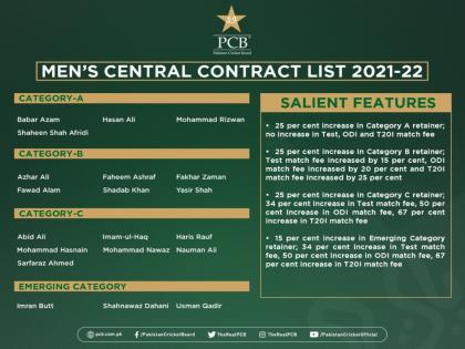पीसीबीनं १ जुलै २०२१ ते ३० जून २०२२ पर्यंतचा हा करार जाहीर केला आहे. हसन अली आणि मोहम्मद रिझवान यांना अ गटात बढती मिळाली आहे, तर इम्रान बट, शाहनवाझ दहानी आणि उस्मान कादीर यांची Emerging श्रेणीत निवड झाली आहे.