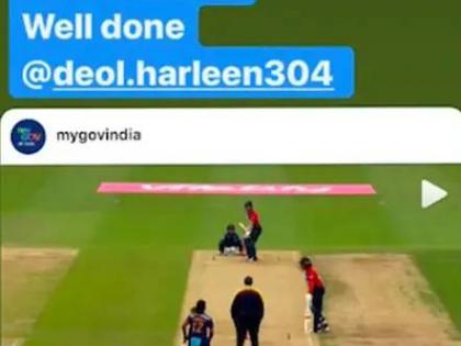 पंतप्रधान नरेंद्र मोदी यांच्या इन्स्टाग्राम अकाऊंटवर एक इन्स्टा स्टोरी पोस्ट करण्यात आली आहे. यात पंतप्रधान नरेंद्र मोदींनी एका शब्दात हर्लीनच्या अफलातून झेलचं वर्णन केलं आहे. "अद्भूत" असं विशेषण देऊन पंतप्रधान नरेंद्र मोदी यांनी हर्लीननं सीमारेषेजवळ घडवलेल्या क्षेत्ररक्षणाच्या अप्रतिम दर्शनाचं कौतुक केलं आहे.