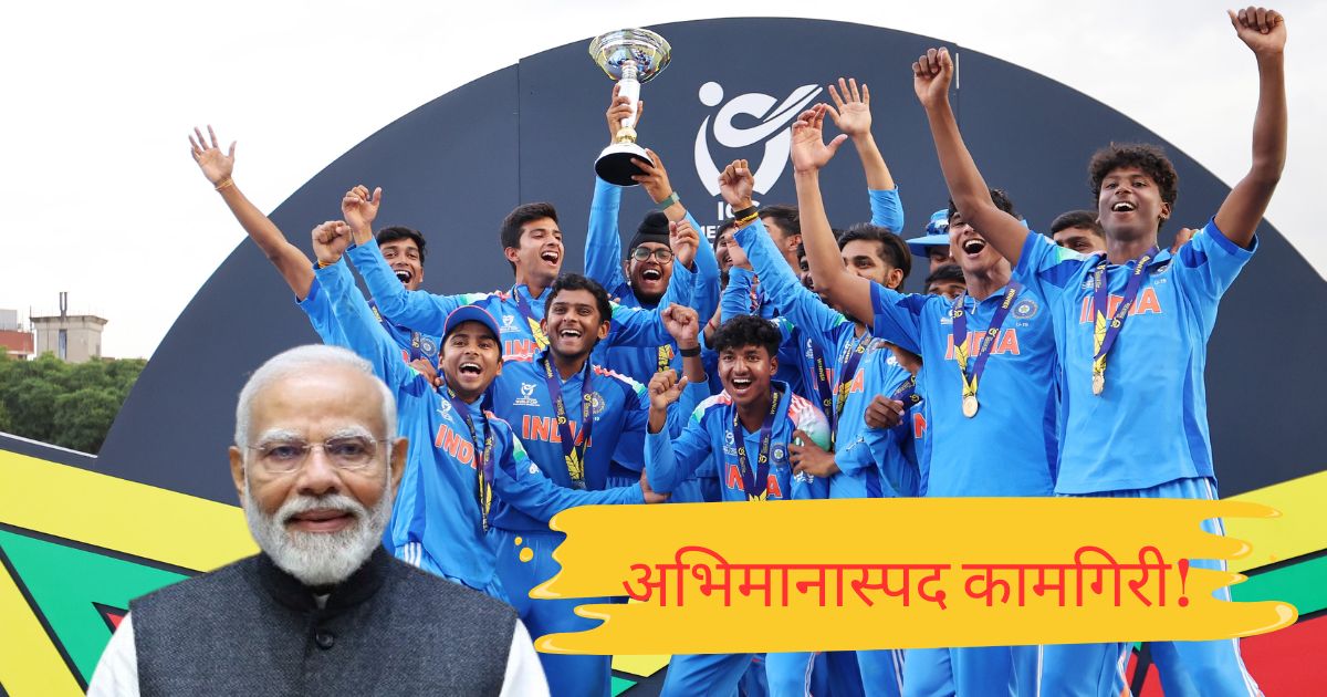 ICC Under 19 World Cup Final PM Narendra Modi Congratulates Team India : आयुष म्हात्रेच्या नेतृत्वाखालील भारतीय संघाने झिम्बाब्वेच्या हरारेच्या मैदानात रंगलेल्या फायनलमध्ये इंग्लंडला हरवून सहाव्यांदा ICC U19 वर्ल्ड कपवर आपले नाव कोरले. दहाव्या प्रयत्नात सहावी ट्रॉफी जिंकणाऱ्या युवा टीम इंडियाने यंदाच्या हंगामात एकही सामना न गमावता ट्रॉफी उंचावली. फायनलमध्ये धावांची 'बरसात' करत विक्रमी विजयासह जेतेपद मिळवल्यावर वैभव सूर्यवंशीच्या धमाकेदार कामगिरीसह कर्णधार आयुष म्हात्रे आणि संघातील अन्य प्रतिभावंत खेळाडूंवर देशभरातून कौतुकाचा वर्षाव होताना दिसत आहे. पंतप्रधान नरेंद्र मोदी यांनी देखील खास ट्विट करत युवा खेळाडूंचे अभिनंद करत त्यांना भविष्यातील वाटचालीसाठी शुभेच्छा दिल्या आहेत.