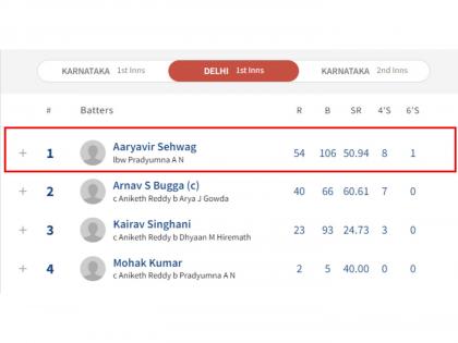वीरेंद्र सेहवागच्या मुलाने मात्र दमदार कामगिरी केली. त्याने ओपनिंग करताना शानदार अर्धशतक झळकावले. पहिल्या दिवशी ५० धावा करून तो नाबाद परतला. आर्यवीर दुसऱ्या दिवशी बाद झाला. त्याने ८ चौकार आणि एका षटकारासह ५४ धावा केल्या. त्याच्या या खेळीच्या जोरावर दिल्लीचा संघ कर्नाटकवर भक्कम आघाडी घेताना दिसत आहे. अशा स्थितीत पहिल्या दोन दिवसांच्या लढतीत आर्यवीर हा अन्वयच्या तुलनेत वरचढ ठरताना दिसला.
