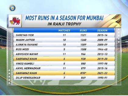 रणजी करंडक स्पर्धेतील मागील १६ डावांमध्ये १ तिहेरी शतक, दोन द्विशतक, ३ वेळा १५०+ धावसंख्या , आता अंतिम सामन्यात एक शतक आणि चार अर्धशतकं झळकावली आहेत. रणजी करंडक २०२१-२२ मध्ये त्याने सर्वाधिक ९३७ धावा केल्या आणि मागच्या वर्षीचा स्वतःचाच ९२८ धावांचा विक्रम मोडला. त्याने पुन्हा एकदा विनोद कांबळीचा ८८० ( १९९७-९८) आणि दिलीप वेंगसरकर यांचा ८६९ ( १९९०-९१) यांचा विक्रम मोडला.