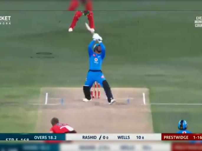 भारत-ऑस्ट्रेलिया मालिकेची चर्चा सुरू असताना दुसरीकडे बिग बॅश लीगवरही सर्वांचे लक्ष वेधले आहे. BBL 10मध्ये अॅडलेड स्ट्रायकर्स विरुद्ध रेनेगड्स संघातील सामन्यात राशिद खाननं ( Rashid Khan) मारलेला फटका चर्चेत आहे. स्ट्रायकर्सनं ७ बाद १२२ धावा केल्या. स्ट्रायकर्सचे प्रतिनिधित्व करणाऱ्या राशिदनं या सामन्यात MS Dhoniचा हॅलिकॉप्टर शॉट मारला. पण, त्यावरून कॉमेंटेटर्सना हसू आवरले नाही.