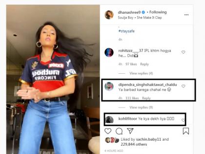टीम इंडियाचा फिरकीपटू युजवेंद्र चहल ( Yuzvendra Chahal) सध्या संकटाचा सामना करत आहे. त्याचे आई-वडिलांना कोरोनाची लागण झाली आहे. आईवर घरीच उपचार सुरू होते, तर वडिलांना हॉस्पिटलमध्ये दाखल केले गेले होते. मागील आठवड्यात चहलची पत्नी धनश्री वर्मा ( Dhanashree Verma) हिनं ही माहिती पोस्ट केली होती. पण, त्यानंतर त्यांच्या प्रकृतीबाबत अद्याप अपडेट्स आलेले नाही. अशात धनश्रीने मंगळवारी इस्टाग्रामवर डान्सिंग व्हिडीओ पोस्ट केला. यात ती रॉयल चॅलेंजर्स बँगलोरच्या ( RCB) जर्सीत सॅल्यूट करत डान्स करताना दिसत आहे. पण, सोशल मीडियावर ती ट्रोल झाली.