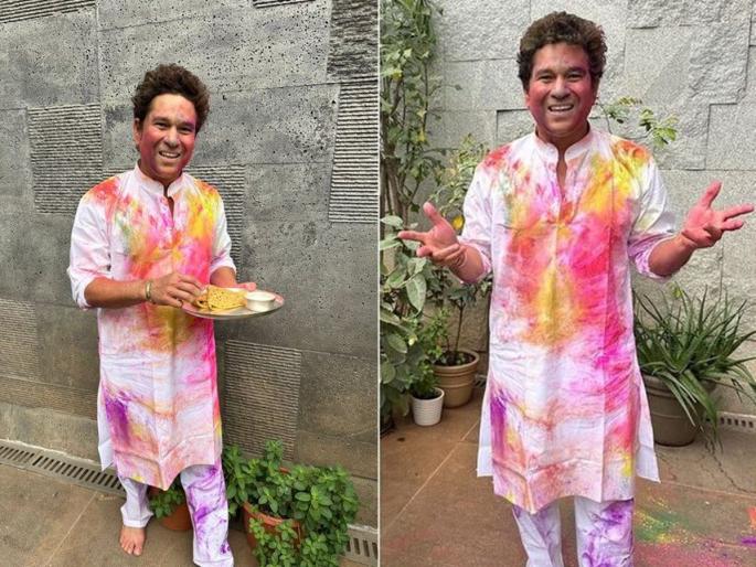 मुंबई - क्रिकेटचा देव म्हणून जगभरात प्रसिद्ध असलेला भारतरत्न सचिन तेंडुलकर सध्या निवृत्ती एन्जॉय करतोय. क्रिकेटच्या सर्वच प्रकारांतून निवृत्त झाल्यानंतर तो आता सोशल मीडियातून चाहत्यांना भेट देत असतो. अनेकदा चाहत्यांशी गप्पाही मारतो. गेल्या काही महिन्यांपासून त्याचा सोशल मीडियावरील वावर आणि प्रत्यक्ष गावच्या फिल्डवर उतरल्याचे व्हिडिओ आपण पाहतोय. कधी चहावाल्यामुलासोबत दिसतो, तर कधी मंदिरात दर्शनासाठी असतो. आता, होळीच्या शुभेच्छा घेऊन सचिन चाहत्यांच्या भेटीला आलाय. पांढरा शुभ्र कुर्ता परिधान केलेल्या रंगीबेरंगी अवस्थेत सचिनने ट्विटरवर फोटो शेअर केलाय.