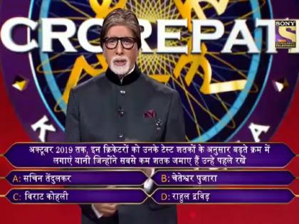 केबीसीचे अँकर अमिताभ बच्चन यांनी हा प्रश्न विचारला आणि त्याला पुढीलप्रमाणे पर्याय दिले होते. १. सचिन तेंडुलकर, २. चेतेश्वर पुजारा, ३. विराट कोहली आणि ४, राहुल द्रविड.