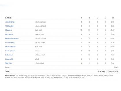 अल अमरात : ओमान आणि स्कॉटलंड संघांनी मंगळवारी 50-50 षटकांच्या सामन्यांत विक्रमाला गवसणी घातली. या सामन्यात स्कॉटलंडने नाणेफेक जिंकून प्रथम क्षेत्ररक्षण निवडले आणि ओमानच्या संघाचा संपूर्ण डाव 17.1 षटकांत अवघ्या 24 धावांवर गुंडाळला. स्कॉटलंडने विजयासाठीचे 25 धावांचे लक्ष्य अवघ्या 3.2 षटकात एकही विकेट न गमावता पार केले. लिस्ट A क्रिकेटमधील ही चौथी नीचांक खेळी ठरली.