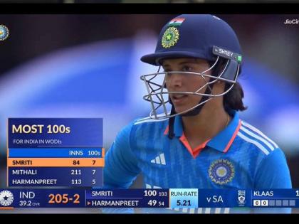Smriti Mandhana create History! भारतीय महिला संघाची स्टार ओपनर स्मृती मानधना हिने सलग दुसऱ्या वन डे सामन्यात दक्षिण आफ्रिकेच्या गोलंदाजांची धुलाई केली. स्मृतीने सलग दुसऱ्या सामन्यात शतक झळकावताना ऐतिहासिक कामगिरी केली. तिने सचिन तेंडुलकर, डेव्हिड वॉर्नर व रोहित शर्मा यांच्या विक्रमाशीही बरोबरी केली. INDWvsSAW यांच्यातला दुसरा वन डे सामना आज चिन्नास्वामी स्टेडियमवर खेळवला जात आहे आणि स्मृतीने खणखणीत शतक झळकावले आहे.
