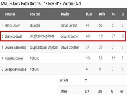 दक्षिण आफ्रिकेच्या स्थानिक क्लब क्रिकेटमध्ये खेळताना शेन डॅड्सवेलने शनिवारी हा विक्रम रचला. विशेष म्हणजे त्याचा 20 वा वाढदिवस सुद्धा शनिवारी होता. त्यामुळे या सामन्यात त्याने शानदार खेळी करत आपला 20 वा वाढदिवस अनोख्या पद्धतीने साजरा केला. शेन डॅड्सवेलच्या या खेळीच्या जोरावर त्याचा संघ एनडब्ल्यू पुकेने पॉच डॉर्पविरुद्ध 50 षटकांमध्ये 3 बाद 677 धावा केल्या.