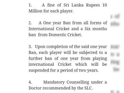 श्रीलंकेचे क्रिकेटपटू धनुष्का गुणतिलका, कुशल मेंडीस आणि निरोशान डिकवेला यांच्यावर श्रीलंका क्रिकेट बोर्डानं एका वर्षांची आंतरराष्ट्रीय क्रिकेट बंदी आणि ६ महिने स्थानिक क्रिकेटमध्ये खेळण्याची बंदी घातली आहे. शिवाय त्यांना प्रत्येकी १० मिलियन श्रीलंकन रुपये म्हणजे ३७ लाख २९ हजारांचा दंडही भरावा लागणार आहे. या खेळाडूंनी इंग्लंड दौऱ्यावर बायो बबल नियमांचे उल्लंघन केले होते. सार्वजनिक ठिकाणी धुम्रपान करतानाचा त्यांचा व्हिडीओ व्हायरल झाला होता.