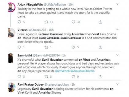 सुनील गावस्कर ( Sunil Gavaskar) यांच्या कमेंटने चाहते नाराज झाले आहेत. हिंदीत समालोचन करताना गावस्कर यांनी विराटच्या निराशाजनक कामगिरीवर म्हटले की,''विराटनं लॉकडाऊनमध्ये फक्त अनुष्काच्या गोलंदाजीवर सराव केला.'' लॉकडाऊनमध्ये विराट-अनुष्काचा ( Video : अनुष्कानं टाकला विराटला बाऊंसर; विरुष्काचा क्रिकेट सामना पाहिलात का?) क्रिकेट खेळतानाचा व्हिडीओ व्हायरल झाला होता. त्याचा संदर्भ देऊन गावस्कर यांनी हे विधान केलं असाव, परंतु त्यांच्या या विधानानं चाहते चांगलेच भडकले आहेत. गावस्करांच्या या विधानाचा अनेकांनी दुहेरी अर्थही लावला.
