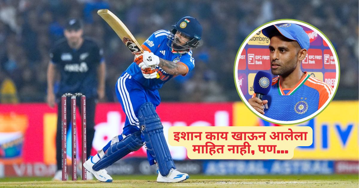 Web Summary : सूर्यकुमार यादव ने न्यूजीलैंड के खिलाफ मैच जीतने वाली साझेदारी के बाद ईशान किशन की आक्रामक बल्लेबाजी की सराहना की। स्ट्राइक रोटेशन को लेकर शुरुआती निराशा के बावजूद, सूर्य ने माना कि ईशान की प्रभावशाली पारी ने दबाव कम किया, जिससे भारत की रिकॉर्ड तोड़ जीत हुई।