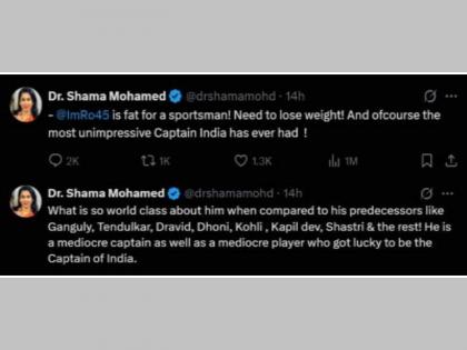 शमा मोहम्मद यांनी ट्विट करत म्हटले होते की, खेळाडू म्हणून रोहित शर्मा लठ्ठ आहे आणि तो भारताचा प्रभावहीन कर्णधारदेखील आहे. त्याला वजन कमी करण्याची गरज आहे. त्याच्या आधी आलेल्या गांगुली, तेंडुलकर, द्रविड, धोनी, कोहली, कपिल देव, शास्त्री आणि इतरांच्या तुलनेत तो खूपच सामान्य आहे. तो एक सामान्य कर्णधार आणि एक सामान्य खेळाडू आहे, ज्याला नशिबाच्या भरवशावर भारतीय संघाचे कर्णधारपद मिळाले.