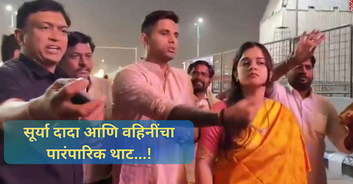 सूर्यकुमार यादव आपली पत्नी देविशा शेट्टी हिच्यासोबत मंदिरात पोहोचला होता. यावेळी दोघांनीही पारंपारिक पेहराव केला होता. सूर्यकुमारने गुलाबी रंगाची शेरवानी परिधान केली होती, तर देविशा पारंपारिक रेशमी साडीत दिसली. हिंदू धर्मातील अत्यंत पवित्र मानल्या जाणाऱ्या या तीर्थक्षेत्री या जोडप्याने मनोभावे प्रार्थना केली.दक्षिण आफ्रिकेविरुद्धच्या मालिकेनंतर सूर्यकुमार कुटुबियांसोबत वेळ घालवत आहे. श्री वेंकटेश्वर स्वामी मंदिराच्या परिसरात त्याला पाहताच चाहत्यांनी मोठी गर्दी केली. परंतु, सूर्याने चाहत्यांना नाराज न करता त्यांच्यासोबत सेल्फी काढले.