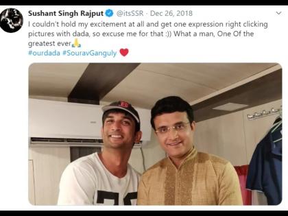 News 18ने एक्स्ट्रा टाईम्सचा हवाला दिला आहे. त्यांच्या माहितीनुसार सुशांत आणि गांगुली यांच्यात 2018मध्ये कोलकाता येथे भेट झाली होती. त्यावेळी गांगुली नॉर्थ कोलकाता हाऊस येथे एका जाहिरातीचे चित्रिकरण करत होता. तेथे सुशांत येणार आहे, हे गांगुलीला माहीत होतं. त्यामुळे गांगुलीनं त्याला नॉर्थ कोलकाताच्या लाहा रेसिडेंस येथे येण्यास सांगितले. तेथे या दोघांमध्ये बायोपिक संदर्भात जवळपास एक तास चर्चा झाली. या मिटींगमधील एक फोटो सुशांतनं सोशल मीडियावर शेअर केली होती. त्यानं लिहिलं होतं की,''माझा आनंद मी लपवू शकत नाही आणि त्यामुळेच दादासोबत फोटो काढताना असे एक्स्प्रेशन होते. त्यासाठी मला माफ करा. गांगुली शानदार व्यक्ती आहे.''