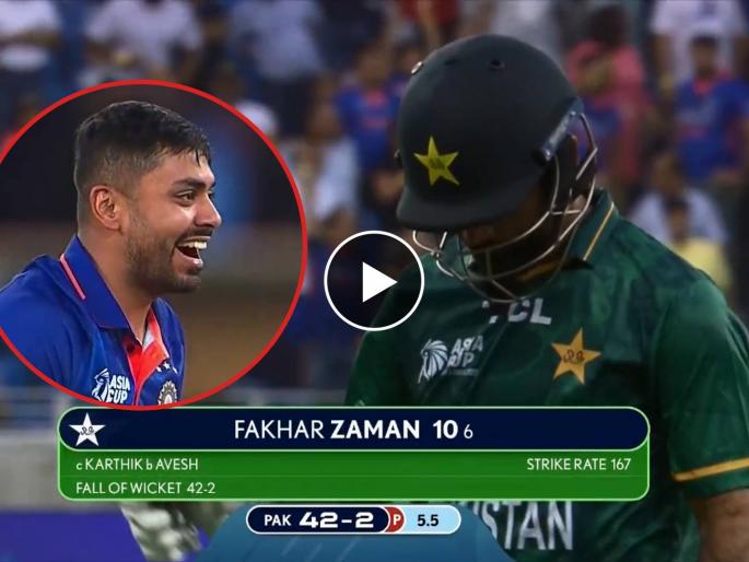 भुवनेश्वर कुमारने त्याच्या दुसऱ्या षटकात पाकिस्तानला मोठा धक्का दिला. कर्णधार बाबर आजम १० धावा करून अर्षदीप सिंगच्या हाती झेल देऊन माघारी परतला. भुवीने या विकेटसह एका वर्षात पहिल्या सहा षटकांत सर्वाधिक १३ विकेट्स घेण्याच्या आशिष नेहराच्या ( २०१६) विक्रमाशी बरोबरी केली. आवेश खानने सहाव्या षटकात १३ धावा दिल्या खऱ्या, परंतु सेट जोडी तोडली. त्याने फखर जमानला १० धावांवर बाद केले. आवेशने टाकलेला चेंडू चांगला उसळी घेत फखरच्या बॅटीजवळून दिनेश कार्तिकच्या हाती विसावला. कार्तिकने अपील करण्याआधीच फखरने खिलाडूवृत्ती दाखवताना माघारी जाण्याचा निर्णय घेतला. स्टेडियमवरील आवाजामुळे काहीच ऐकू येत नसल्याचे आवेश रोहितला सांगताना दिसला. आवाज ही नही आया यार! असे त्याने रोहितला सांगितले.Ind vs Pak Highlight, Ind vs Pak 2022 Match Highlight