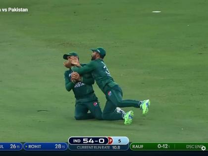 लोकेश राहुल यांनी पहिल्याच षटकात आपला इरादा दाखवून दिला. नसीम शाहच्या पहिल्याच षटकात रोहितने खणखणीत चौकार व षटकार खेचला. तिसऱ्या षटकात लोकेशने नसीमच्या गोलंदाजीवर दोन षटकार खेचले. हॅरीस रौफला रोहितने झोडले अन् या दोघांनी ४.२ षटकांत फलकावर ५० धावा चढवल्या. सहाव्या षटकात रौफच्या गोलंदाजीवर उत्तुंग फटका मारण्याच्या प्रयत्नात रोहितने टोलावलेला चेंडू हवेत उंच गेला अन् खुशदिल शाहने तो टिपला. फाखर जमान व खुशदिल यांच्यात कॅचसाठी टक्कर झाली, परंतु नशीबाने पाकिस्तानची साथ दिली. रोहित १६ चेंडूंत ३ चौकार व २ षटकार खेचून २८ धावांत माघारी परतला. शादाब खानने त्याच्या पहिल्याच षटकात भारताचा दुसरा सलामीवीर लोकेशला ( २८) माघारी जाण्यास भाग पाडले. भारताला ८ धावांच्या अंतराने दोन धक्के बसले.