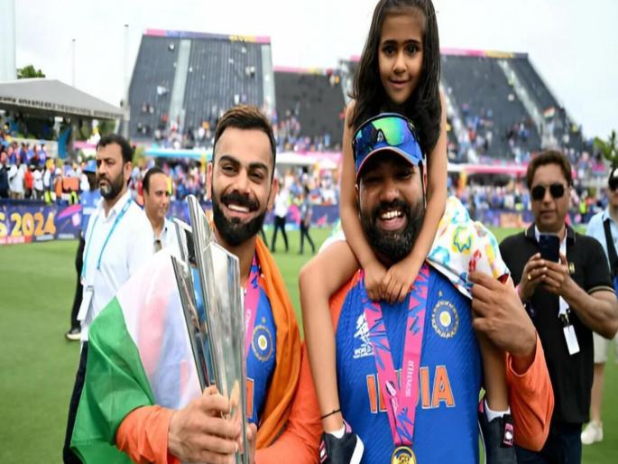 रोहितच्या आईने शेअर केलेल्या फोटोमध्ये रोहित, विराट आणि त्यांची नात अर्थात रोहितची मुलगी समायरा पाहायला मिळत आहे. त्यांनी पोस्ट केलेल्या फोटोमध्ये म्हटले आहे की, मुलगी खांद्यावर... संपूर्ण देश पाठीशी... आणि भाऊ बाजूला आहे. भारतीय संघाने विश्वचषक जिंकताच रोहित शर्मा आणि विराट कोहली यांनी क्रिकेटच्या सर्वात लहान फॉरमॅटमधून निवृत्त होण्याचा निर्णय घेतला. अष्टपैलू रवींद्र जडेजाही ट्वेंटी-२० आंतरराष्ट्रीयमधून निवृत्त झाला.