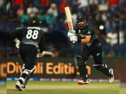 प्रत्युत्तरात न्यूझीलंडचा मार्टीन गुप्तील ( ४) व कर्णधार केन ( ५) यांना अवघ्या १३व्या धावांवर ख्रिस वोक्सनं माघारी पाठवले. त्यामुळे किवीचा संघ बॅकफूटवर फेकला गेला. ख्रिस जॉर्डन व आदील राशीद यांनी पहिल्या १० षटकांत चांगली गोलंदाजी केली. डॅरील मिचेल व डेव्हॉन कॉनवे यांनी संयमी सुरुवातीनंतर किवींचा डाव सावरण्याचा प्रयत्न केला. पण, त्यांचा धावांचा वेग अपेक्षित वेगाप्रमाणे कमी होता. त्यामुळे किवींवर दडपण वाढत होते. १४व्या षटकात लिएम लिव्हिंगस्टननं स्वतःच्याच गोलंदाजीवर कॉनवेचा झेल सोडला, परंतु पुढच्या चेंडूवर त्याला यष्टीचीत करण्यात यश मिळवले. कॉनवे ३८ चेंडूंत ५ चौकार व १ षटकारासह ४६ धावांवर माघारी परतला. किवींना ३८ चेंडूंत ७२ धावा बनवायच्या होत्या. मिचेल व कॉनवे यांनी तिसऱ्या विकेसाठी ८२ धावा जोडल्या.