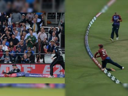 ख्रिस जॉर्डननं टाकलेल्या १७व्या षटकात त्यानं फटकेबाजी केली. चौथ्या चेंडूवर निशॅमनं टोलावलेला चेंडू सीमारेषेवर जॉनी बेअरस्टोनं टिपला अन् तोल जाण्यापूर्वी तो सहकारी खेळाडूकडे फेकला. पण, चेंडू हातातून सोडण्याआधी त्याचा पाय सीमारेषेला टेकला व किवींना ६ धावा मिळाल्या.