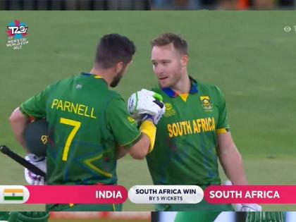 त्यात कार्तिकला दुखापतीमुळे मैदान सोडावे लागले आणि रिषभ पंत यष्टींमागे उभा राहिला. मार्करामने अर्धशतकी खेळी केली. १६व्या षटकात अखेर भारताला विकेट मिळवण्यात यश आले. मार्कराम ४१ चेंडूंत ६ चौकार व १ षटकारासह ५२ धावांवर सूर्यकुमार यादवच्या हाती झेल देऊन बाद झाला. त्याने मिलरसह ७६ धावांची भागीदारी केली होती आणि आफ्रिकेला विजयासाठी २५ चेंडूंत ३३ धावा हव्या होत्या. हार्दिकने २९ धावांत १ विकेट घेतली. १८व्या षटकात आर अश्विनला चेंडू देण्याचा जुगाड रोहितने खेळला, परंतु मिलरने पहिल्या दोन चेंडूंवर दोन षटकार खेचले. आफ्रिकेला १५ चेंडूंत आता केवळ १२ धावा करायच्या होत्या. अश्विनने चौथ्या चेंडूवर त्रिस्तान स्तब्सला LBW केले. आफ्रिकेने ५ विकेट्स राखून सामना जिंकला. मिलरने ४६ चेंडूंत ४ चौकार व ३ षटकारांसह नाबाद ५९ धावा केल्या. आफ्रिकने ५ बाद १३७ धावा केल्या.