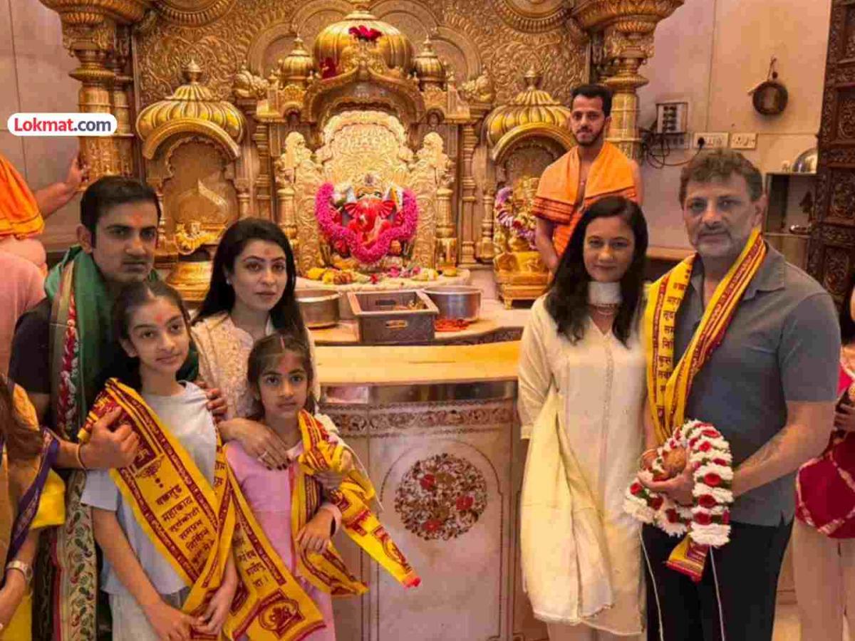 Gautam Gambhir at Siddhivinayak Temple Mumbai: भारत आणि इंग्लंड यांच्यात टी२० विश्वचषक २०२६ मध्ये उद्या उपांत्य फेरीतील दुसरा सामना मुंबईतील वानखेडेच्या मैदानात खेळवण्यात येणार आहे. हा सामना जिंकून भारतीय संघ सलग दुसऱ्यांदा जेतेपद उंचावण्यासाठी एक पाऊल पुढे टाकण्यासाठी प्रयत्नशील असेल. यंदाच्या हंगामात भारतीय संघाने दक्षिण आफ्रिकेविरुद्धच्या सामन्यातील एक पराभव सोडला तर प्रत्येक सामन्यात दमदार कामगिरी केली आहे. पण अभिषेक शर्माचा फॉर्म चिंतेचा विषय ठरला आहे. त्याच्या बॅटमधून एक अर्धशतक आले, पण ज्या फटकेबाजीची अपेक्षा होती, ते त्याला जमलेले नाही. इंग्लंडविरुद्धच्या सामन्याआधी भारतीय खेळाडूंनी सिद्धिविनायक मंदिरात जाऊन बाप्पाचे दर्शन घेतले. यावेळी कोच गौतम गंभीर यांनीही बाप्पाच्या चरणी सहकुटुंब नतमस्तक होत, संघाच्या विजयासाठी साकडे घातले.