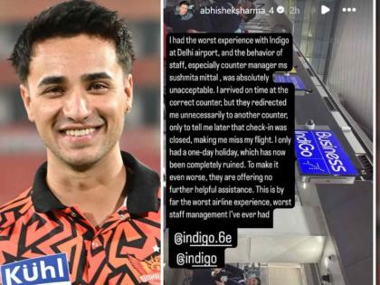 Abhushek Sharma Team India Cricketer, Delhi Airport : टीम इंडियाचा स्टार फलंदाज अभिषेक शर्मासोबत दिल्लीविमानतळावर गैरवर्तन केल्याची घटना समोर आली आहे. दिल्लीविमानतळावर डावखुऱ्या भारतीय सलामीवीराला वाईट अनुभव आला. त्याने स्वत: सोशल मीडियावर याबाबतची माहिती दिली. अभिषेक शर्माच्या म्हणण्यानुसार, इंडिगोच्या स्टाफकडून त्याला वाईट वागणूक मिळाली. तेथील कर्मचारी त्याच्याशी नीट वागले नाहीत. त्यातही अभिषेकने एका विशिष्ट व्यक्तीचे नाव घेत निशाणा साधला.