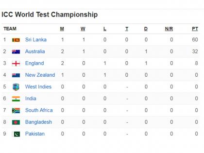 जागतिक कसोटी अजिंक्यपद स्पर्धेंतर्गत आतापर्यंत तीन कसोटी सामने झाले. त्यात श्रीलंकेने 60 गुणांसह अव्वल स्थान पटकावले आहे. अॅशेस मालिकेत ऑस्ट्रेलियाने 1-0 अशा फरकाने आघाडी घेतली आहे. त्यामुळे ते 32 गुणांसह दुसऱ्या स्थानावर आहे. अॅशेस मालिकेतील दुसरा सामना अनिर्णित राहिल्याने इंग्लंडने खाते उघडले आहे आणि ते 8 गुणांसह तिसऱ्या स्थानी आहेत.