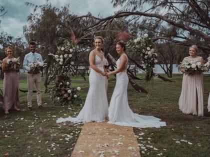 मेलबर्न - आंतरराष्ट्रीय क्रिकेटमधील महिला खेळाडूने चक्क लग्नगाठ बांधली आहे. न्यूझीलंडची महिला क्रिकेटपटू हेली जेनसन आणि ऑस्ट्रेलियाची महिला क्रिकेटपटू निकोला हॅनकॉक या दोघी जीवनासाथी बनल्या आहेत. सोशल मीडियावर या दोघींच्या लग्नाचे फोटो व्हायरल होत आहेत. विशेष म्हणजे मेलबर्न स्टार्सनं अधिकृत ट्विटर हँडलवरून नवविवाहित जोडप्याचा फोटो शेअर करून त्यांना लग्नाच्या शुभेच्छा दिल्या आहेत.