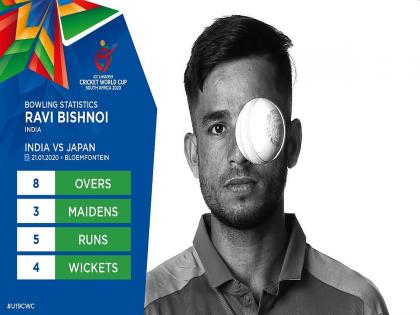 नाणेफेक जिंकून टीम इंडियाचा कर्णधार प्रियम गर्गनं प्रथम क्षेत्ररक्षणाचा निर्णय घेतला. भारतीय गोलंदाजांची त्याचा या निर्णय योग्य ठरवला. वर्ल्ड कप स्पर्धेत पदार्पण करणाऱ्या जपानच्या फलंदाजांना त्यांनी दुहेरी धाव करण्यापासून रोखले. सलामीवीर मार्कस थुर्गाटे ( कर्णधार ) आणि शू नोगोची यांनी पाच षटकं खिंड लढवली. कार्तिक त्यागीनं जपानला पहिला धक्का दिला. त्यानंतर आलेल्या नील दातेलाही पहिल्याच चेंडूवर कार्तिकनं माघारी पाठवले. त्यानंतर जपानची पडझड कायम राहिली. जपानच्या पाच फलंदाजांना तर भोपळाची फोडता आला नाही.