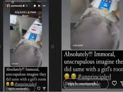 नवी दिल्ली : टी-20 विश्वचषक खेळण्यासाठी भारतीय संघ सध्या ऑस्ट्रेलिया दौऱ्यावर आहे. ऑस्ट्रेलियामध्ये असलेल्या विराट कोहलीसोबत एक धक्कादायक घटना घडली. विराटच्या हॉटेल रुममध्ये एक फॅन घुसला आणि रुमसह विराटच्या सामानाचा व्हिडीओ काढून सोशल मीडियावर व्हायरल केला. यामुळे संतापलेल्या कोहलीने प्रायव्हसीचा मुद्दा उचलून धरला आहे. यावरूनच आता बॉलिवूड अभिनेत्री उर्वशी रौतेला हिने देखील संताप व्यक्त केला आहे.