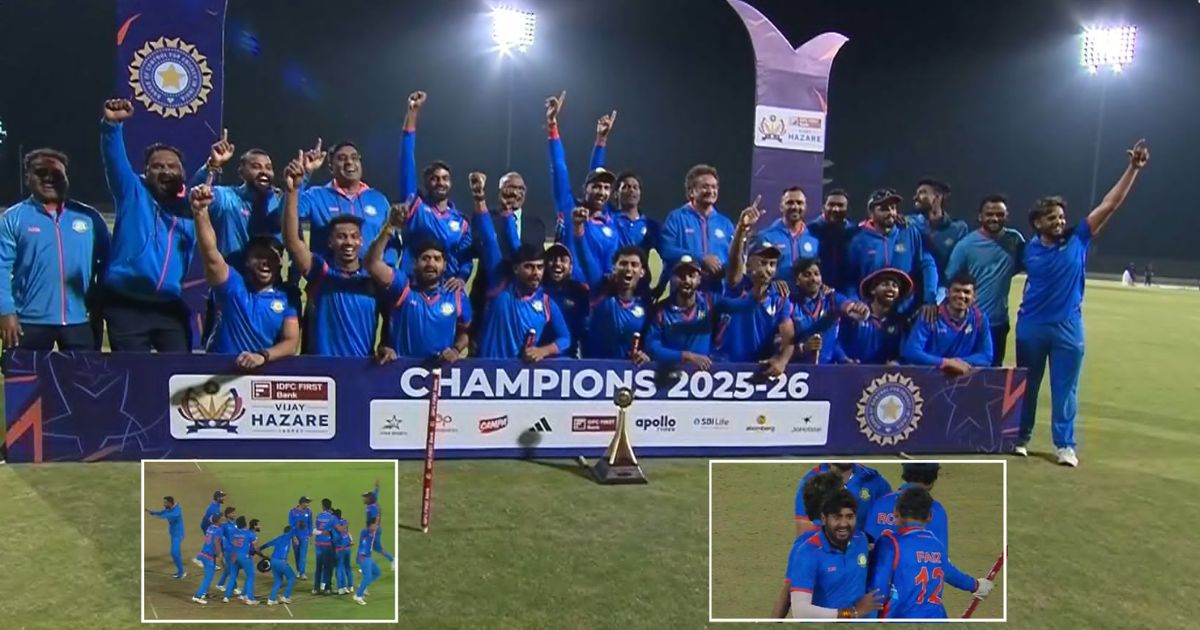 Vidarbha Are The Winners Of The Vijay Hazare Trophy 2025-26 देशांतर्गत क्रिकेट स्पर्धेतील सर्वात प्रतिष्ठित विजय हजारे ट्रॉफी स्पर्धेत सलग दुसऱ्यांदा फायनल खेळताना विदर्भ संघाने अखेर पहिल्यांदा या स्पर्धेच जेतेपद पटकावले आहे. सलामीवीर अथर्व तायडेची दमदार शतक आणि यश राठोडनं केलेल्या अर्धशतकाच्या जोरावर पहिल्यांदा फलंदाजी करताना विदर्भ संघाने निर्धारित ५० षटकात ८ विकेट्सच्या मोबदल्यात ३१७ धावा करत सौराष्ट्र संघासमोर ३१८ धावांचे टार्गेट सेट केले होते.