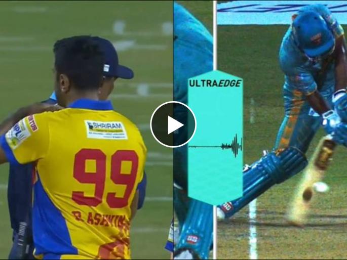 Ba11sy Trichy vs Dindigul Dragons या सामन्यातील १३व्या षटकात हा प्रसंग घडला. ट्रीसी संघाची अवस्था ६ बाद ६९ अशी झाली होती आणि त्यावेळी आर राजकुमार फलंदाजी करत होता. अश्विनने टाकलेल्या गुगलीवर राजकुमार फसला अन् चेंडू त्याच्या बॅट जवळून यष्टिरक्षकाच्या हाती विसावला. झेलची जोरदार अपील झाली अन् मैदानावरील अम्पायरने आऊट निर्णय दिला. त्याविरोधात राजकुमारने लगेच DRS घेतला. त्यात चेंडू व बॅट यांच्यात संपर्क न झाल्याचे स्पष्ट झाले. बॅट ग्राऊंडवर आदळल्याने स्पाईक दिसत असल्याचे समोर आले अन् तिसऱ्या अम्पायरने राजकुमारला नाबाद दिले.