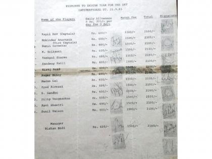 आताच्या घडीला क्रिकेटपटून लाखो-कोटीच्या घरात मानधन घेतात, परंतु 20-25 वर्षांपूर्वी परिस्थिती वेगळी होती. कपिल देव आणि सुनील गावस्कर या दिग्गज खेळाडूंना फार कमी पैसे मिळायचे. 1983मध्ये जेव्हा भारतीय संघाने कपिल देव यांच्या नेतृत्वाखाली वर्ल्ड कप उंचावला होता, तेव्हा मिळालेली बक्षीस रक्कम ही तुटपूंजी होती.  सोशल मीडियावर व्हायरल झालेल्या एका फोटोत भारतीय संघातील खेळाडूंना मिळणारे मानधन लिहिले आहे. 21 सप्टेंबर 1983च्या वन डे मालिकेतील हा फोटो आहे. त्यावेळी बिशन सिंग बेदी हे मॅनेजर होते.