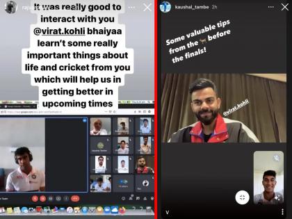 "विराट भैय्या, तुम्ही केलेल्या मार्गदर्शनामुळे क्रिकेटमधील आणि आयुष्यातील काही महत्त्वाच्या गोष्टी शिकलो. तुमच्या मार्गदर्शनाचा आम्हाला भविष्यात खेळ सुधारण्यासाठी नक्कीच फायदा होईल", असं राज्यवर्धनने लिहिलं. तर "एका महान खेळाडूकडून फायनलआधी काही खास टिप्स", असं म्हणत कौशल तांबे याने फोटो पोस्ट केला. विराटच्या नेतृत्वाखाली २००८ साली क्वालालंपूर येथे दक्षिण आफ्रिकेला पराभूत करून भारताने १९ वर्षाखालील स्पर्धेत विश्वचषक जिंकला होता. तशीच किमया आता यश धूलच्या संघाला इंग्लंडविरूद्ध करून दाखवावी लागणार आहे.