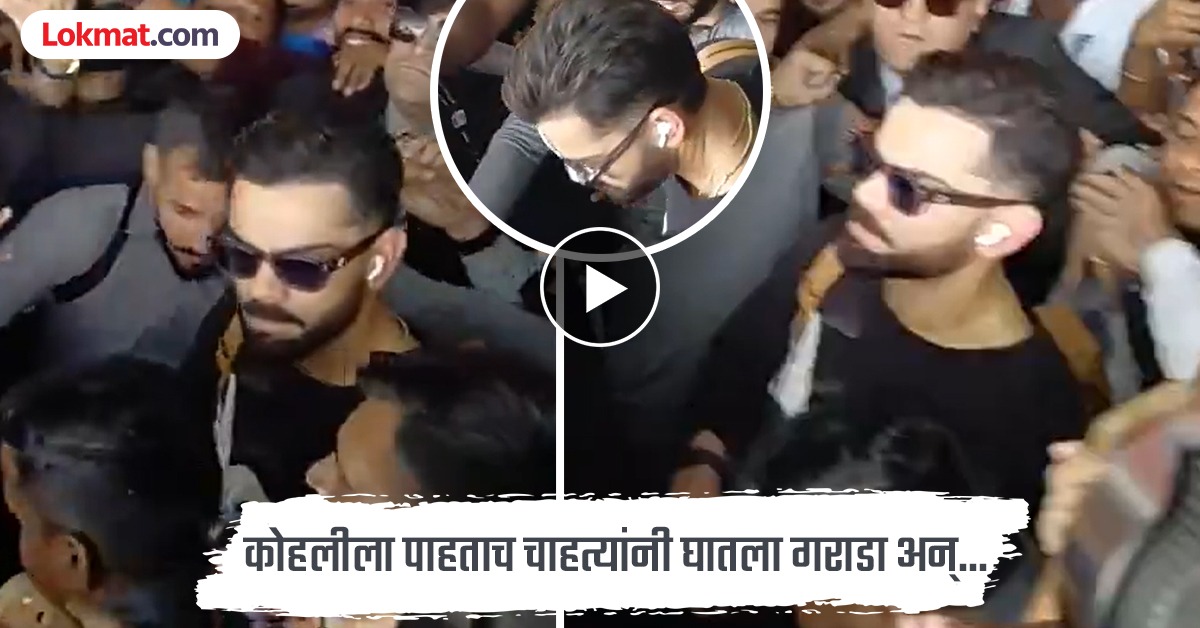 भारतीय क्रिकेट संघ नवीन वर्षाची सुरुवात न्यूझीलंडविरुद्धच्या वनडे मालिकेसह करणार आहे. तीन सामन्यांची ही मालिका ११ जानेवारीपासून सुरू होत आहे. मालिकेतील पहिला वनडे सामना गुजरात येथील बडोदा येथील बीसीए स्टेडियमवर खेळवला जाईल. या सामन्यासाठी विराट कोहली बडोद्यात दाखल झाला आहे. मात्र, विमानतळावरून बाहेर पडताना तो 'विराट' गर्दीत फसल्याचे पाहायला मिळाले. कोहली विमानतळाबाहेर येताच चाहत्यांनी त्याला चारही बाजूंनी घेराव घातला. चाहते कोहलीला आपल्या कॅमेऱ्यात कैद करण्याचा प्रयत्न करताना दिसले. बराच वेळ चाललेल्या धावपळीनंतर विराट कोहली अखेर आपल्या कारमध्ये बसला आणि थेट हॉटेलकडे रवाना झाला.