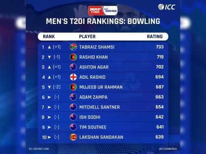 ट्वेंटी-20 गोलंदाजांत टॉप टेनमध्ये एकही भारतीय नाही. दक्षिण आफ्रिकेचा तब्रेझ शमसी ( ७३३) अव्वल क्रमांकावर आहे. त्यानं अफगाणिस्तानच्या राशिद खानला ( ७१९) दुसऱ्या क्रमांकावर ढकलले. ऑस्ट्रेलियाचा अॅश्टन अॅगर ( ७०२), इंग्लंडचा आदिल राशिद ( ६९४) आणि बांगलादेशचा मुजीब उर रहमान ( ६८७) टॉप फाईव्हमध्ये आहेत.