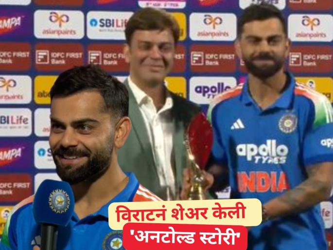 IND vs NZ 1st ODI, Virat Kohli On POTM Awards : न्यूझीलंडविरुद्धच्या वडोदराच्या मैदानातील वनडे सामन्यात विराट कोहलीचा जलवा पाहायला मिळाला. त्याचं शतक अवघ्या ७ धावांनी हुकलं, पण ९३ धावांच्या दमदार खेळीच्या जोरावर त्याने सामनावीरचा पुरस्कार पटकावला. आंतरराष्ट्रीय क्रिकेटमध्ये ४५ व्या वेळी त्याने हा पुरस्कार जिंकला. सामन्यानंतर त्याला तुझ्याकडे किती सामनावीर पुरस्कार आहेत? असा प्रश्न विचारण्यात आला होता. यावर प्रामाणिक उत्तर देताना मला याची कल्पना नाही, असे सांगत एकही पुरस्कार माझ्याकडे ठेवत नाही, असे उत्तर विराट कोहलीनं दिले. एवढेच नाही तर सामना गाजवल्यावर मिळालेली ट्रॉफी कुणाला देतो ही अनटोल्ड स्टोरीही त्याने यावेळी शेअर केली आहे.