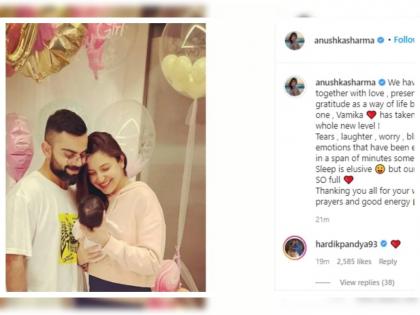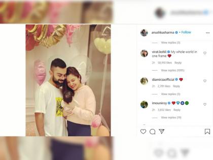 विराटनं कमेंट केली की,''माझं संपूर्ण जग एका फ्रेममध्ये!'' या पोस्टला आतापर्यंत ३१ मिलियनहून अधिक लाईक्स मिळाले आहेत, तर विराटच्या कमेंटला ६० हजारहून अधिक लाईक्स आहेत. Vamika Meaning: ... म्हणून विराट-अनुष्का यांनी कन्येचं नाव 'वामिका' असं ठेवलं!